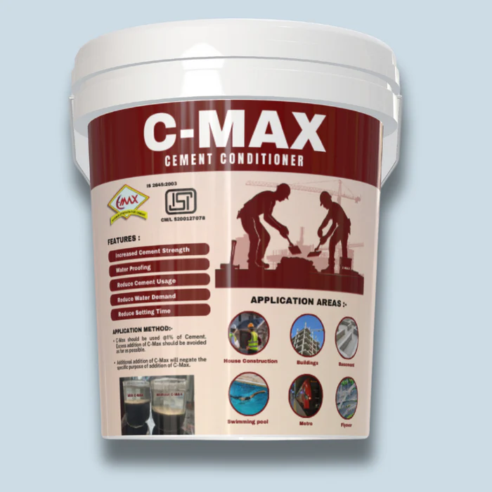 C-MAX, a cutting-edge polymeric additive, adheres to the stringent standards set by IS:2645-2003 [BIS CM/L 5200127078]. This innovative solution comprises microfine mineral particles and nano ceramics suspended in Phenolic Latex Acrylates, providing enhanced strength to concrete blocks.